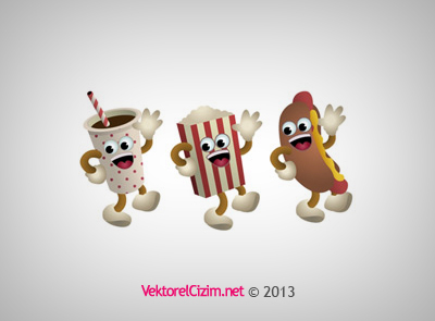 Ai, EPS, CDR Formatlarında Vektörel Patlamış Mısır, Sosisli Sandviç, Kola, Kahve, Sıcak Çikolata