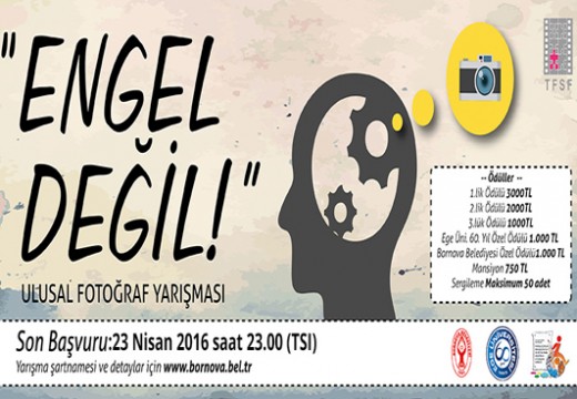 Ege Üniversitesi Rektörlüğü Engelli Çocuklar Rehabilitasyon ve Eğitim Parkı Araştırma Uygulama Merkezi ve Bornova Belediyesi tarafından düzenlenen "Engel Değil" Ulusal Fotoğraf Yarışması başladı. Yarışma; toplumda, engelliliğe yönelik acıma, dışlama, ayrışma ve/veya sınıflama olmaksızın birlikte yaşama kültürünün gelişimi için güncel sorunlara değinme amacı taşımaktadır.
