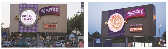 Aytaç, iftar saatinde görüntüsü değişen açık hava reklam uygulamasıyla bir ilke imza attı.