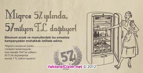 Ülkemizin önde gelen süpermarket zincirlerinden Migros 57. Yılı kapsamında bazı ürünleri nostaljik ambalajlarında satışa çıkarmıştı.www.VektorelCizim.net