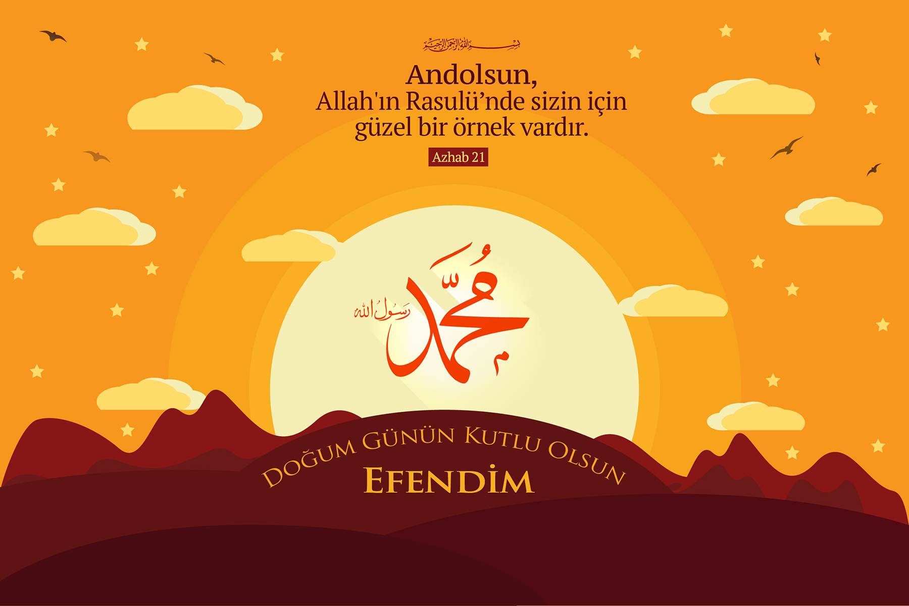 Andolsun, Allah'ın Rasulü'nde Sizin İçin Güzel Bir Örnek Vardır (AZHAP 21), Doğum Günün Kutlu Olsun Efendim, Hazreti Muhammed Sallallahu Aleyhi ve Sellem, Gökyüzü, Güneş, Bulut, Kutlu Doğum Haftası vektörel görsellerini ücretsiz, üyeliksiz indirebilirsiniz.