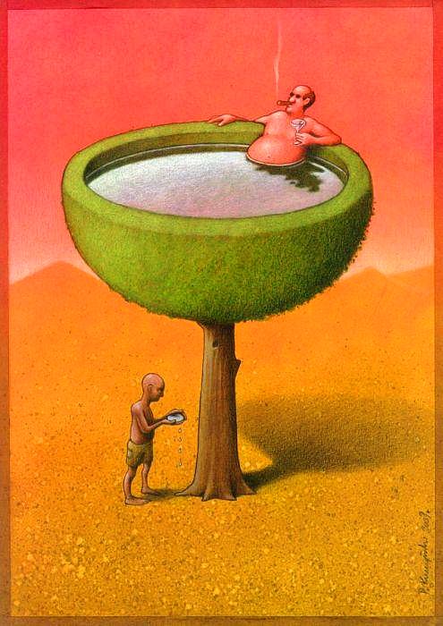 Pawel Kuczynski günümüz dünyasını ve günümüz dünyasının olaylarını kendi bakış açısı ile tablolara yansıtıyor.