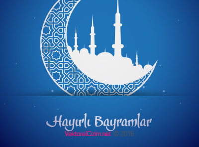 Ramazan Bayramı ve Kurban Bayramı tebrikleriniz için vektörel Hayırlı Bayramlar, Cami, Hilal, Ay görsellerini ücretsiz, üyeliksiz indirebilirsiniz.