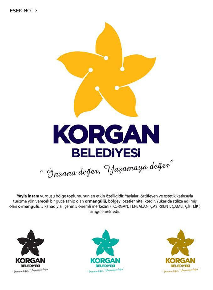 Korgan Belediyesi ilçeye özgü özellikleri bünyesinde barındırması amaçlanarak 7 farklı logo tasarımı oluşturararak halk oylamasına sundu.
