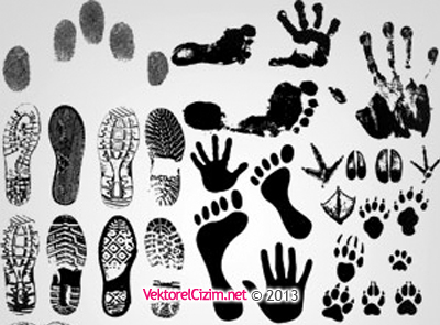 Ai, EPS, CDR Formatlarında Vektörel Lastik İzleri, Ayak İzleri, Pati İzleri, Ayı, Kuş İzleri