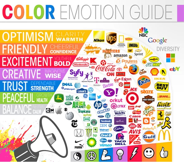 Aşağıdaki infografik renklerin anlamını ve o renkleri kullanan dünya markalarını gösteriyor.