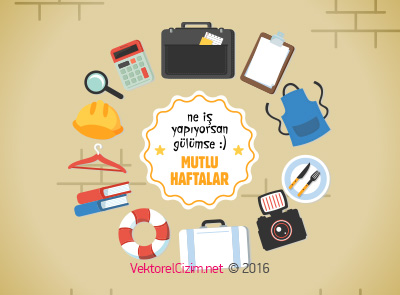 Ne İş Yapıyorsan Gülümse, Mutlu Haftalar, Pazartesi, İlk İş Günü, Mesai, Fotoğraf Makinesi, Evrak Çantası, Büyüteç, Askı, Çatal, Bıçak, Tabak, Kitap, Hesap Makinesi, Önlük, Duvar vektörel görsellerini ücretsiz, üyeliksiz indirebilirsiniz.