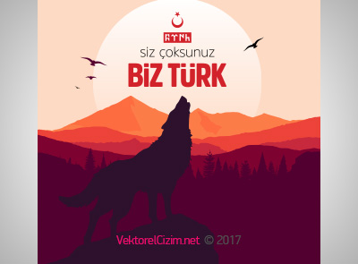 Siz Çoksunuz Biz Türk, Ay Yıldız, Bozkurt, Göktürkce Türk Yazısı vektörel görsellerini ücretsiz, üyeliksiz indirebilirsiniz.