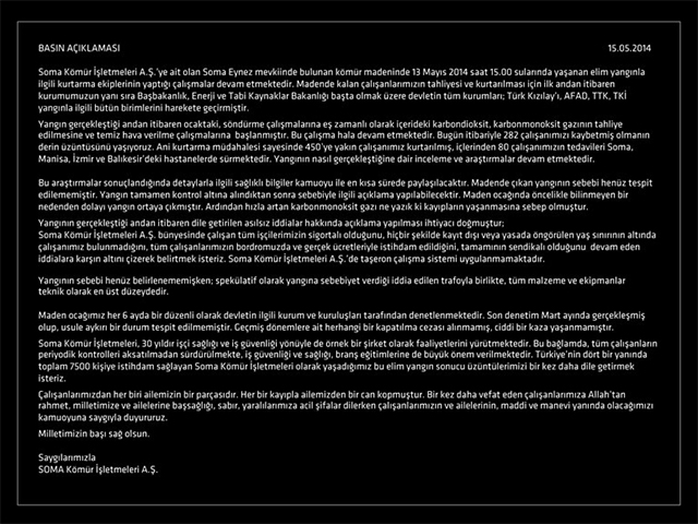 Manisa'nın Soma ilçesinde Türkiye tarihinin en büyük maden facilarından birinin meydana gelmesinden sonra Soma Kömür İşletmeleri A.Ş. internet sitesini kapattı.