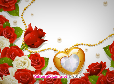 Ai, SVG, CDR Formatlarında Vektörel Beyaz Gül, Kırmızı Gül, İnci Kolye, Rose, Necklace