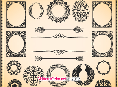 Ai, EPS, CDR Formatlarında Vektörel Süslü Çerçeveler, Tasarım Süsleri, Araçları, Retro Süsler
